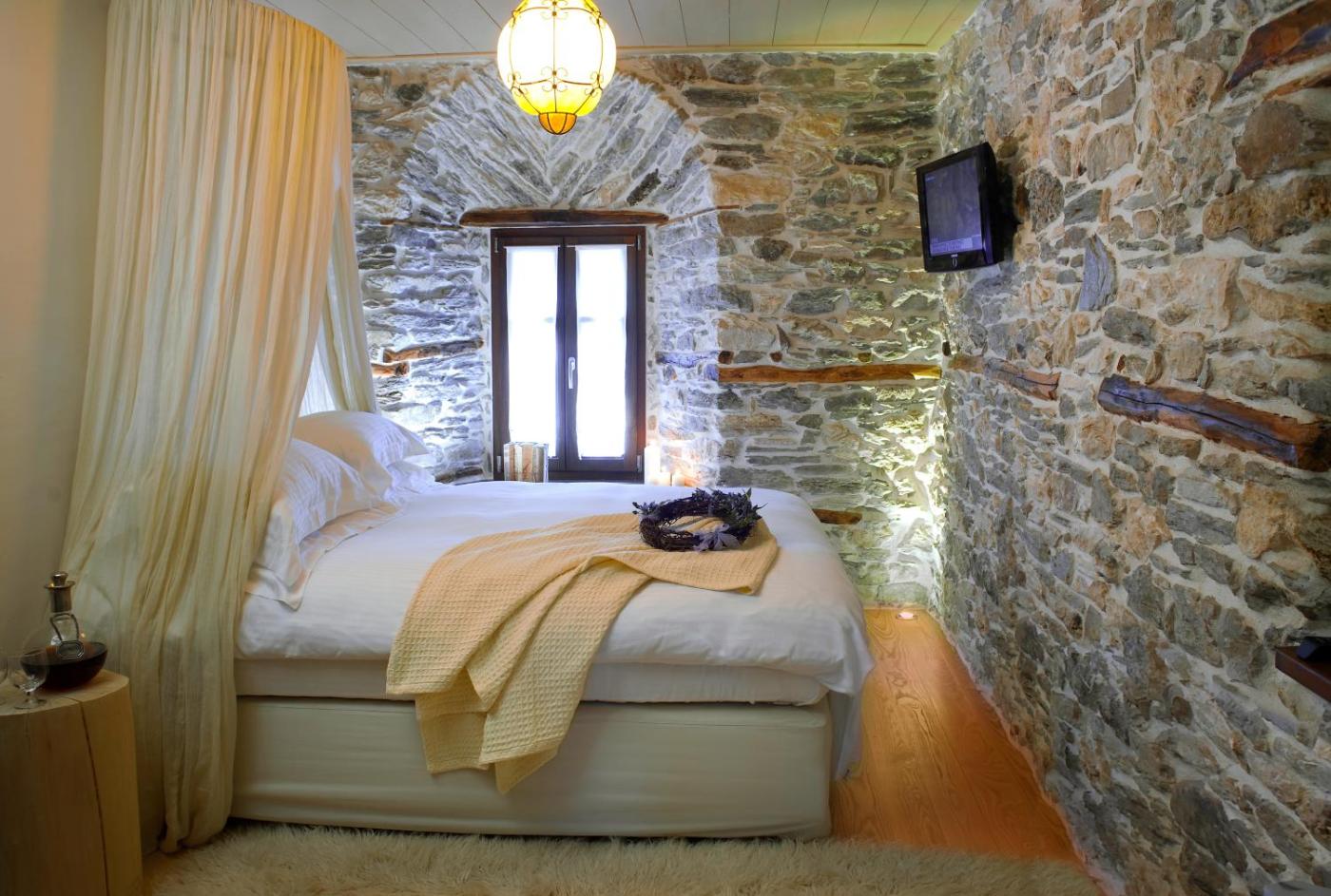 Superior Double Room with Panoramic View. Built in stone and wood this traditionally decorated room is located on the 2nd floor and offers free WiFi. It overlooks the Aegean Sea. Includes: -Coco-Mat beds -LCD TV -fridge -hairdryer -elegant bathroom with free toiletries Some rooms offer a fireplace upon availability. Free logs are provided. ;