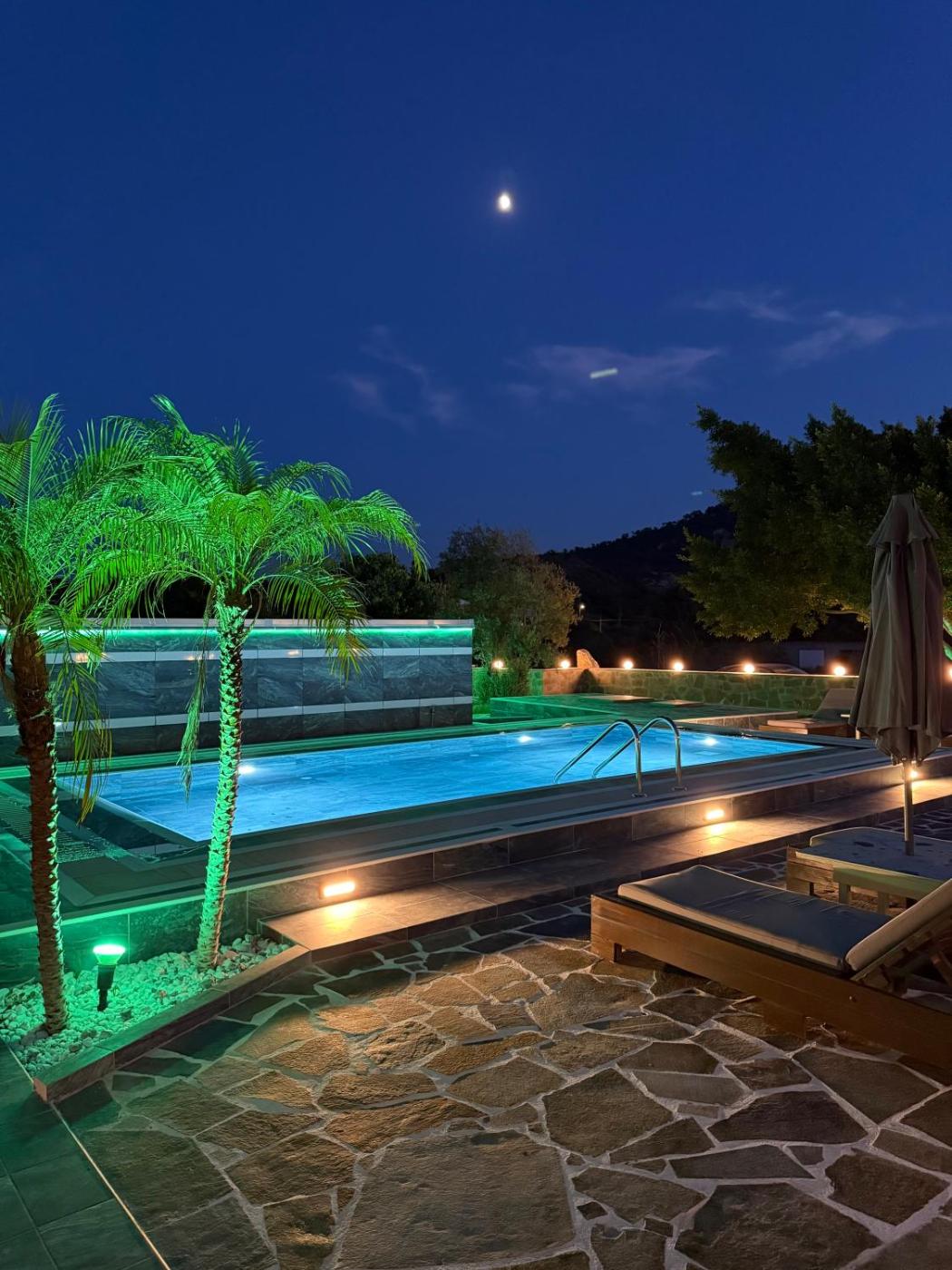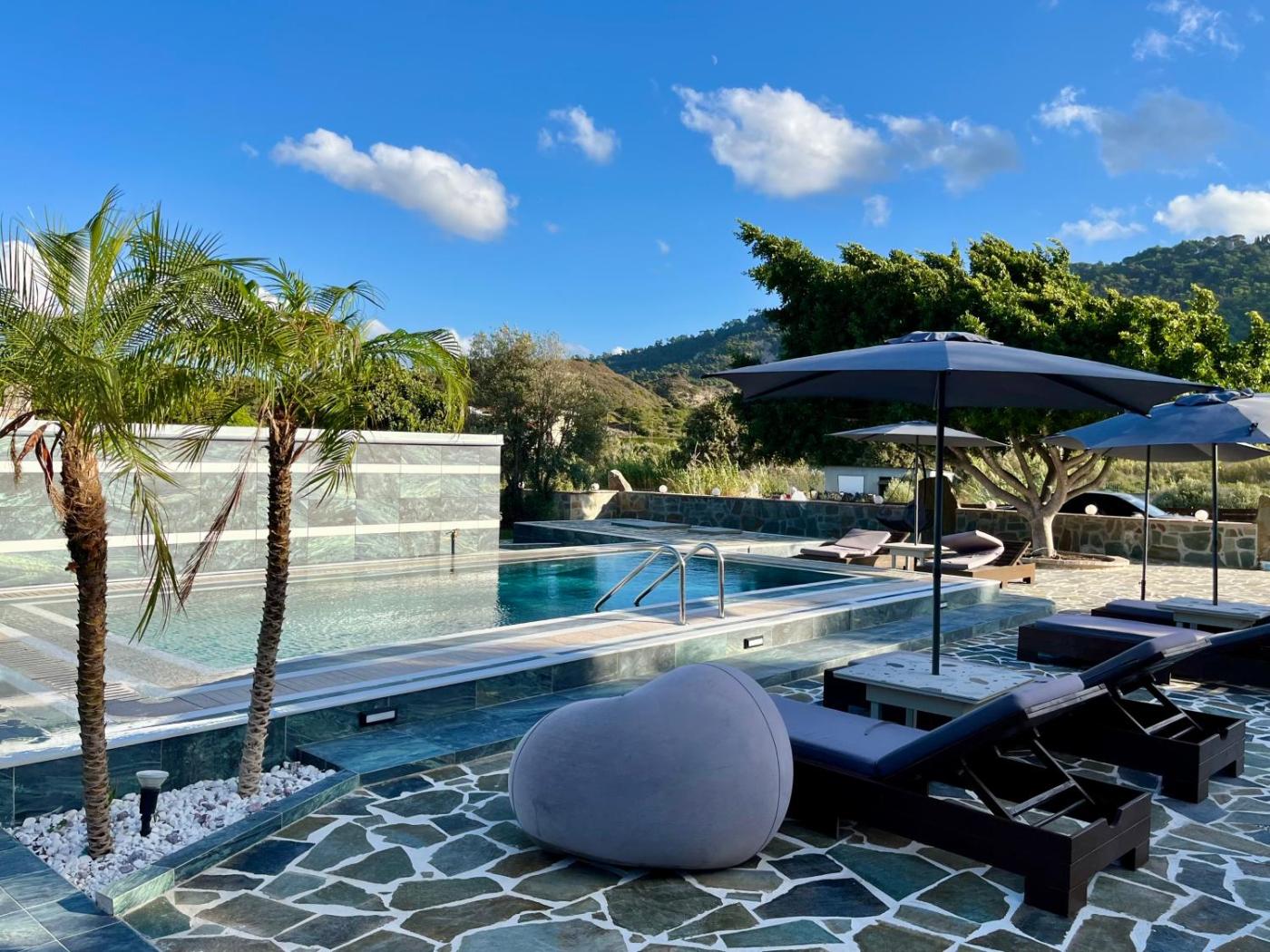 Three-Bedroom Villa. The pool with a view is the standout feature of this villa. Boasting a private entrance, this air-conditioned villa features 1 living room, 3 separate bedrooms and 2 bathrooms with a shower. Guests will find a stovetop, an oven and a toaster in the kitchen. The villa also comes with a barbecue. This villa has a washing machine, flat-screen TV, garden views, as well as winechampagne for guests. The unit has 4 beds.